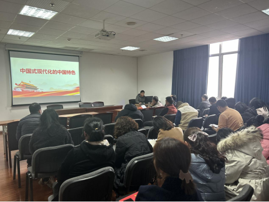 在党课中,周全同志带领大家深入学习、正确领会和深刻把握中国式现代化的“中国特色”具有重大的理论和现实意义,阐述了中国式现代化是人口规模巨大的现代化、中国式现代化是全体人民共同富裕的现代化、中国式现代化是物质文明和精神文明相协调的现代化、中国式现代化是人与自然和谐共生的现代化、中国式现代化是走和平发展道路的现代化等五个方面。中国式现代化,是中国共产党领导的社会主义现代化,既有各国现代化的共同特征,更有基于自己国情的中国特色。