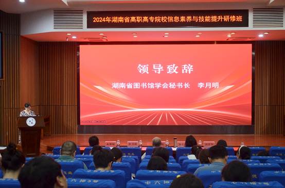 7月5日,由湖南省图书馆学会主办的2024年湖南省高职高专院校信息素养与技能提升研修班在我校顺利举办。我校校长吴亮红、湖南省图书馆学会秘书长李月明出席开班仪式,来自全省43所高职高专院校的100余名图书馆负责人、信息素养教育工作者参加本次研修班。