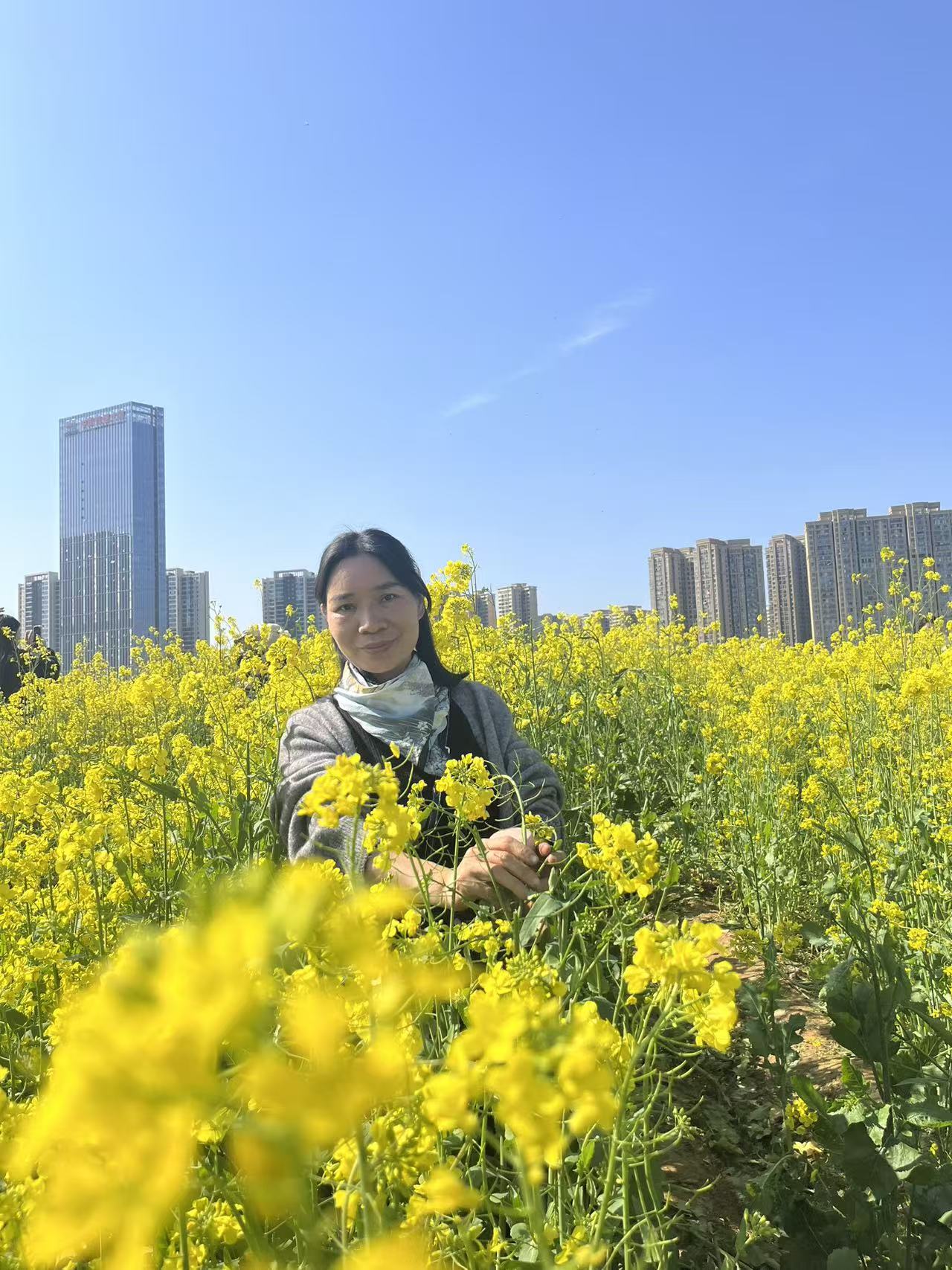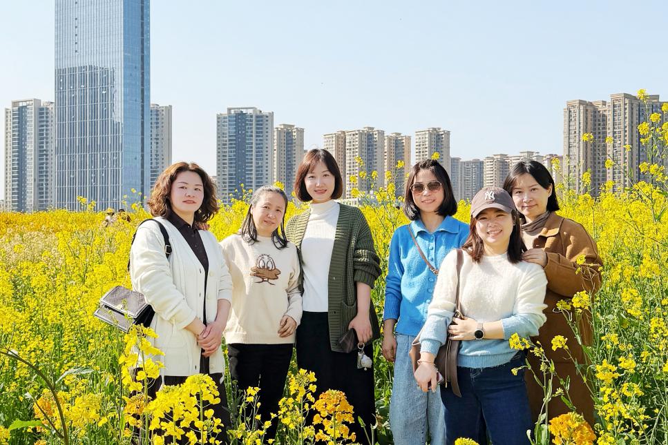 活动当天,阳光明媚,春风和煦。大家早早来到集合点,脸上洋溢着期待的笑容。大家三五成群,结伴而行,漫步在洋湖湿地公园盛开的油菜花田间。金黄的油菜花竞相绽放,一眼望去,仿佛铺展出一片灿烂的金色海洋;微风拂过,花海荡漾,清香四溢。大家或驻足观赏,或拍照留念,用镜头定格春日的美好瞬间;或围坐草地,畅谈生活趣事,分享点滴温暖。公园里其他游客也被这热闹的氛围所感染,纷纷投来羡慕的目光。