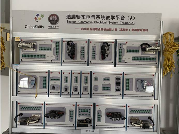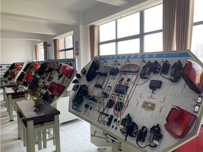简介:汽车营销实训室面积450平方米,共设有4个电气实训室,分别为汽车电气设备线路连接实训室、整车电气设备实训室、汽车电气检测实训室、汽车电气零部件拆装实训室。现有电气实训台架100余台套,总资产200余万元。安装了多媒体教学软件,组成多媒体网络教室,方便任课教师理论教学,实现“教学做”合一的教学模式。实训中心一直以来承担汽车电气相关的实训教学任务。