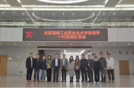4月25日下午,由汽车工程学院院长何忆斌、副院长陈义带队,汽车制造与试验技术专业、新能源汽车技术专业、智能焊接技术专业、等专业教研室主任及骨干教师一行11人赴长沙比亚迪汽车有限公司开展访企拓岗调研,并就校企合作展开深入座谈交流。