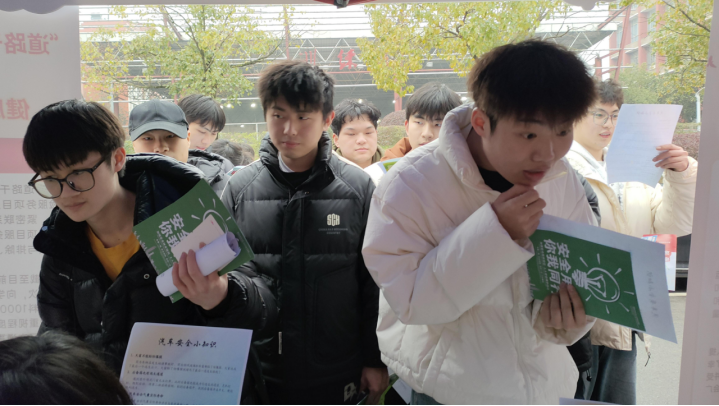 除此之外,学院在集贤公寓门口也进行了汽车安全与健康体检服务项目的宣传,志愿者段凤姣和唐梅晓明为往来学生讲解了汽车安全小知识,并以随机抽题问答的形式,吸引了不少学生驻足打卡。