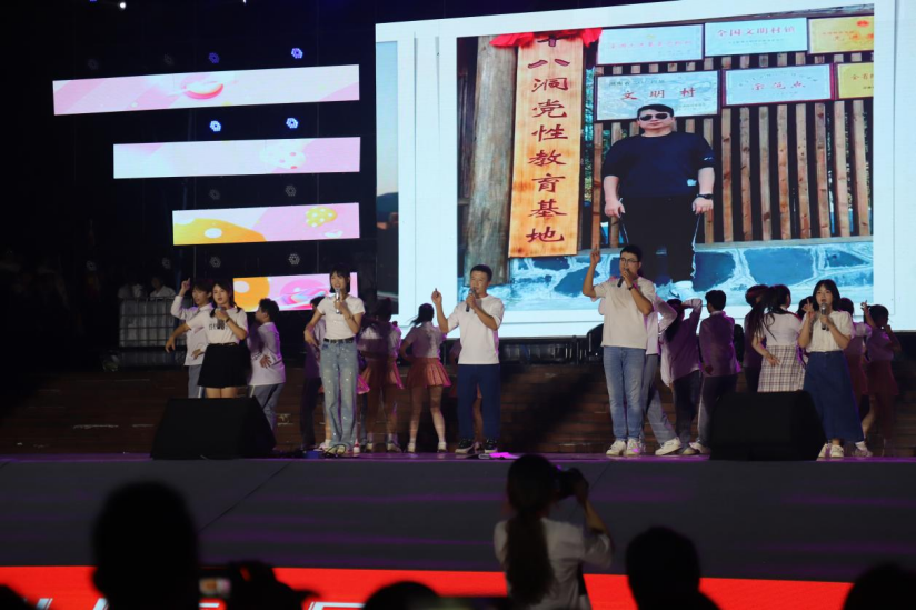迎新晚会中班主任老师范芳和新生的歌舞表演
