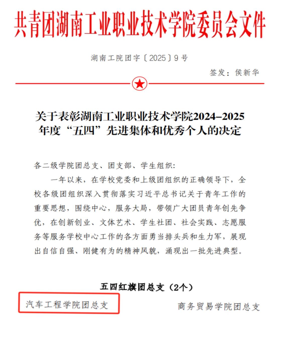 近日,学校发布《关于表彰电子pg游戏平台下载2024-2025年度“五四”先进集体和优秀个人的决定》,汽车工程学院获“五四红旗团总支”等多项荣誉,展现出学院青年师生的卓越风采与责任担当。