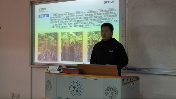 宣讲会开始前,首先由吉利汽车负责人播放宣传片,PPT展示,讲解了关于吉利汽车的概况、构成、未来发展方向、人员需求以及选择该单位的理由。吉利汽车集团对电焊工,叉车工,油漆工,焊工,设备维修技术岗等岗位进行招聘,供毕业生选择。