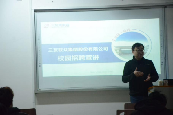 2024年12月10日下午14:00,三友联众集团股份有限公司在我院汽车大楼7608教室展开了招聘活动。三友联众集团是中国电子元件百强企业,此次招聘会的展开,拓宽了我校广大毕业生的就业渠道。