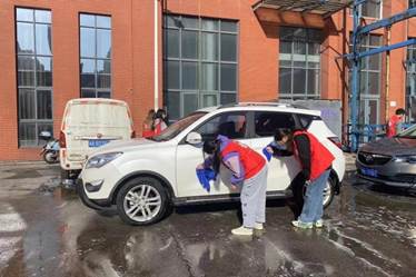 志愿者们一辆接一辆的把洗好的爱车交到老师手中,马思来老师说:“谢谢你们帮我提前预约,还这么贴心的把钥匙送到我的手里,我得把这个活动发到微信朋友圈,让其他老师们也为你们点个赞!”“同学,洗车活动之后有没有打蜡活动的啊?”付老师道。三天的洗车活动,老师们高度肯定了志愿者辛勤的劳动,志愿者们也充满干劲,认真细致的为老师们的爱车精心擦洗。