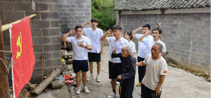 7月1日,正值中国共产党成立101周年。在这个特殊的日子里,学生团队中的7名学生党员来到该村老党员龙德情老人家中,探寻红色记忆。龙德情老人家中三代都是党员,是名副其实的“党员之家”。 “我虽然没有打过仗,但在那个年代也吃过观音土和米糠,是共产党救了我一家人,我一直告诫我的孩子,长大以后要报效祖国,和你们一样加入共产党、为国家的建设贡献出自己的一份力。”作为前辈,龙德情同志殷切期盼道,“你们如今的任务看起来好像没有我们艰巨了,实际上,你们的担子不比我们当年轻呢。”他的一番鼓励使得团队成员获益匪浅。最后,龙德情同志还带领党员们重温了入党誓词。通过这次走访活动,队员们从老党员身上汲取奋进力量,纷纷表示受益良多:“第一次真切地感受到老党员身上那种简朴的生活态度和共产党员伟大的建党精神,对我来说意义重大。”