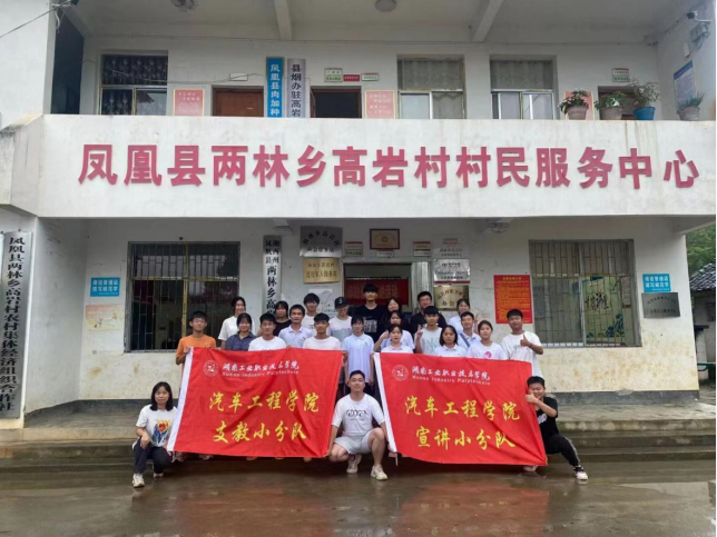 习近平总书记在党的十九大报告中明确提出实施乡村振兴战略,当前,在我国全面建成小康社会的背景下,乡村振兴也取得了较大成就,为进一步助力乡村振兴工作,6月30日,电子pg游戏平台下载汽车工程学院的24名学生在李可丁、汤灵、彭艳三位指导老师的带领下,来到湖南省湘西苗族自治州凤凰县禾库镇高岩村,开展以“青春三湘行 激扬楚怡梦”为主题的三下乡活动。团队分为宣讲团小分队、支教小分队等四支小分队,在为期5天的活动中,围绕农村支教、社会调研、走近党员等环节展开。