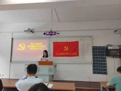 随着国歌的奏响,汽车工程学院汽车服务学生党支部预备党员转正大会正式开始。