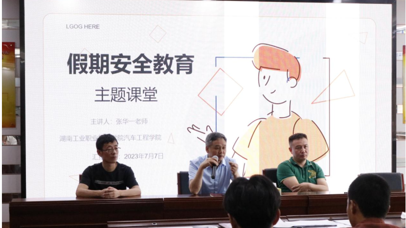 暑期已至,为了提高学生安全意识,保障学生假期安全。7月7日,汽车工程学院卢尚文院长在启智楼414主持“假期安全教育”主题课堂,各活动指导老师和学生参与。