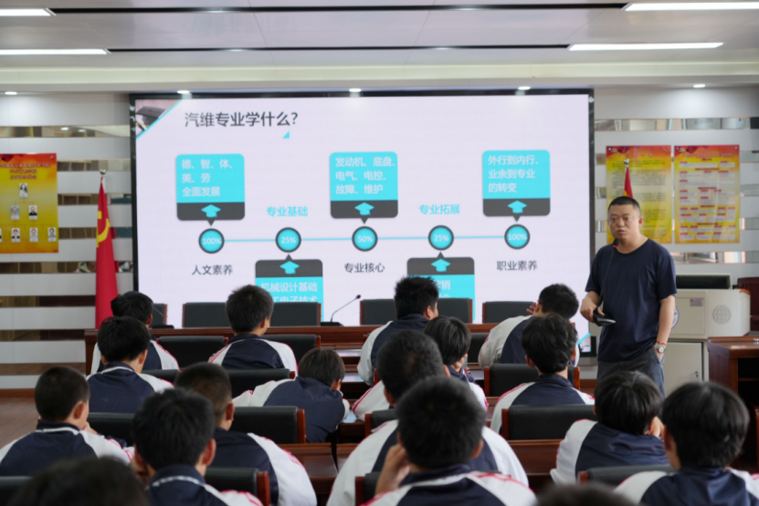 汽车工程学院汽检教研室主任杨承阁为学生们进行了专业宣讲,让他们进一步了解汽维专业特色及以后发展方向,可以更好的对自己学习进行规划。