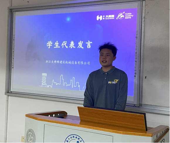 然后湖南区域服务经理唐浩然、带训师傅刘崇斌、学生代表张晋玮分别上台进行发言。他们将于12月2日~12月13日围绕工程高机剪叉车,直臂车、曲臂车的安全操作与保养、液压系统检修、电气系统检修等方面展开为期12天的实操训练并进行认证考核。