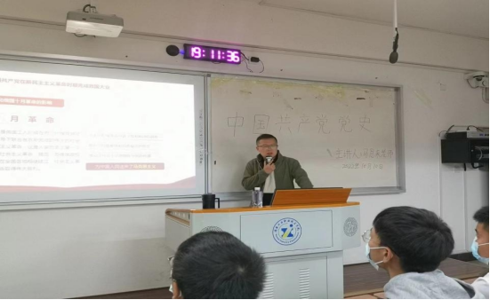 课上,马思来老师围绕开天辟地、改天换地、翻天覆地、惊天动地以及宝贵经验这五个方面讲授党史,带领全体同学重温中国共产党的百年光辉历程,了解中国共产党的丰功伟绩,从党史中汲取奋进力量,交流党史学习教育的体会和收获。同学们在仔细聆听中,认真思考,争取在巩固党课知识的同时,获得对《中国共产党史》新的理解和感悟。
