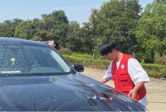 活动现场,24名学生志愿者有序分队:水枪组、清洗组、内饰组分别用高压水枪清洗掉车身、车轮、栅网等地方的泥沙,并喷洒泡沫,最后将车上的积水擦拭干净。活动期间,大家热情高涨,每个环节都有条不紊地进行着,以劳动为荣,乐在其中,力争为全院教职工提供优质服务。活动接近尾声,志愿者们对车辆进行全面检查:查看是否有水渍或脏污,玻璃是否干净。