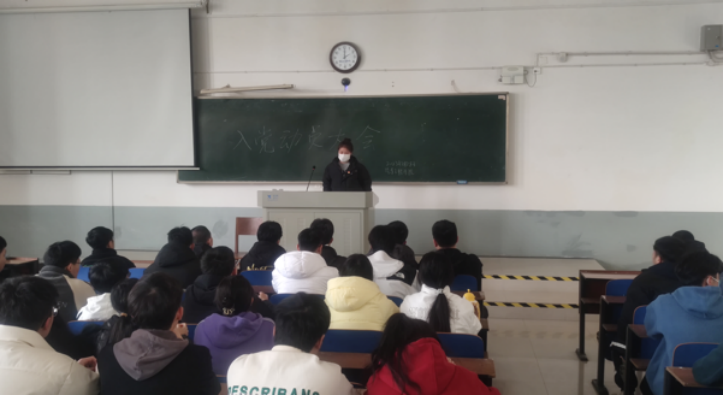 会议开始,负责人颜芳对参与本次入党动员大会的同学表示欢迎,随后详细向同学们讲述了入党基本要求,如:必须是年满十八岁的中国工人、农民、军人、知识分子和其他阶层的先进分子,承认党的纲领和章程,愿意参加党的一个组织并在其中积极工作、执行党的决议和按期交纳党费的,可以申请加入中国共产党……另外本着择优选择的原则,学生入党最好是团员,需成绩优异,不能有课程不及格的情况等。入党需要经过严格的考察,从递交入党申请书和入党校申请书后,同学们将参加党校培训,通过培训让同学们端正入党动机,了解党的章程和相关知识,更积极地向党组织靠拢。最后颜芳从入党申请书格式、入党必要流程等方面向同学们进行了细致的讲解,使他们正确认识到入党的意义和入党严格的程序。全体参会人员思想积极,会议取得圆满成功。
