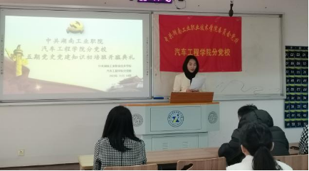 11月14日上午12点,汽车工程学院分党校在启智楼7510教室举行第十四期党史党建初培班开班典礼,参加本次典礼的有汽车工程学院分党校副校长、党总支副书记涂岭书记;团总支书记汤灵老师;汽车工程学院党务办主任戴莹老师;汽车工程学院学工办主任彭上老师;汽车工程学院汽车服务学生党支部书记喻娜老师;汽车工程学院汽车制造学生党支部书记、初培班班主任周丹老师;;辅导员彭艳老师和王轩老师。本次开班典礼由汽车工程学院汽车制造学生党支部书记、初培班班主任周丹老师主持。