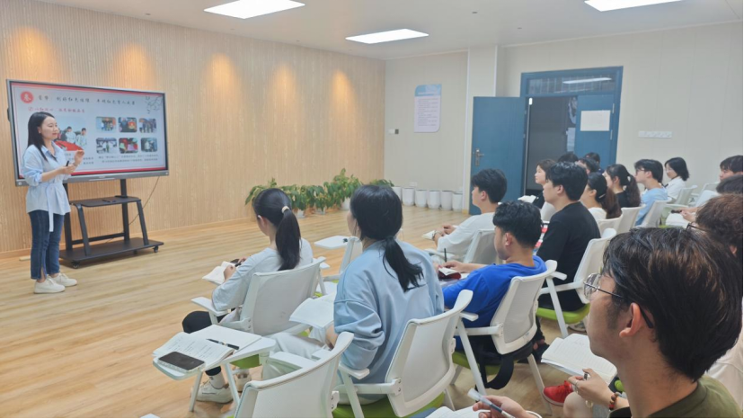 课上,汤灵老师讲述了学院近几年来在红色文化育人过程中的积极探索,将红色文化融入理论学习,打造“培根铸魂”的第一课堂;融入足迹追寻,打造“有声有色”的第二课堂;融入社会实践,打造“知行合一”的社会大课堂。利用特殊节日开展系列育人活动,如纪念“五四”运动105周年系列活动,开展“诵读红色家书 厚植家国情怀”“重温红色故事 感悟青春风采”等系列活动,充分发挥红色文化的育人功能,坚定学生理想信念,激发爱党爱国的热情。
