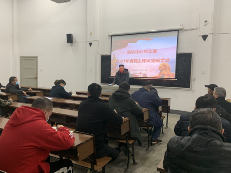 3月22日下午,实训中心党支部在日新楼6308教室组织全体党员召开2021年度民主评议党员大会,大会由实训中心党支部书记胡彦辉同志主持。
