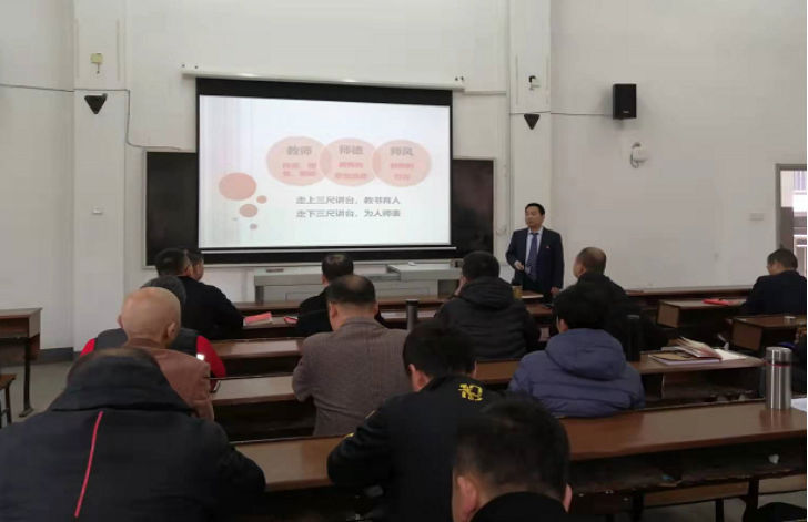 11月9日下午,实训中心组织全体教职工在日新楼6308教室开展师德师风专题教育,本次专题学习由实训中心主任皮智谋同志主持,由实训中心优秀教师代表钳工班组余意老师主讲了一堂主题为《德高为师、身正为范》的师德师风示范课。