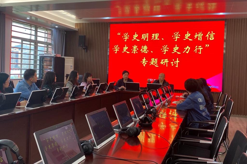 在贯通学史明理、学史增信、学史崇德、学史力行的基础上,突出“学史增信”主题。4月20日下午,商务贸易学院党总支在5407教室开展主题教育二级中心组集中学习研讨。学院领导、党支部书记、办公室主任、教研室主任等相关科级干部参加了会议。会议由党总支委员夏利平主持。