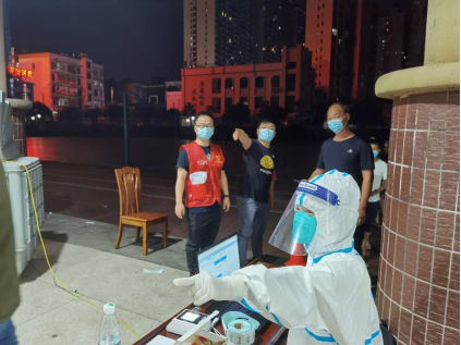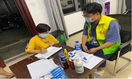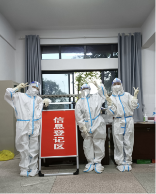 商英2019-1班学生党员苏佳妮积极响应号召,在月亮岛街道中华岭村防疫指挥中心的安排部署下,参与辖区人员集中核酸检测工作。第一次穿上防护服的她,连续奋战,内里的衣物早已湿透也浑然不知,深刻感受到了医护人员工作的伟大和不易,她说:“工作虽然很辛苦,但我觉得很荣耀,我也深刻体会到了‘我是党员我先上’这句经典话语的涵义,以后还有这样的志愿服务,我一定报名!”
