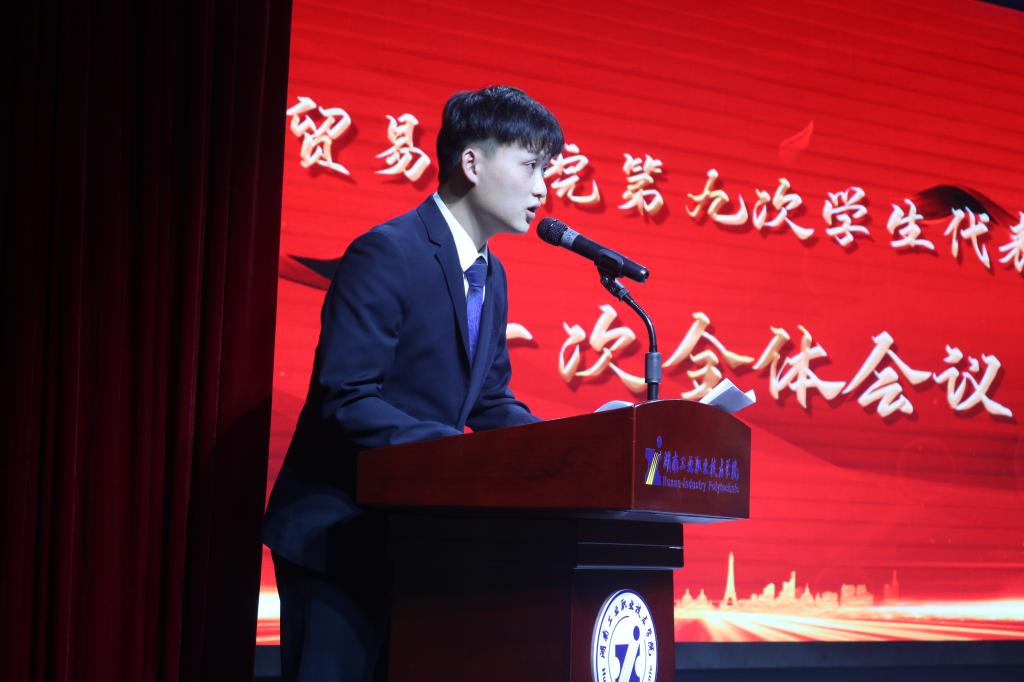11月10日晚,商务贸易学院第九届学生代表大会在1102隆重举行。校团委副书记李陟威,学院党总支书记杨学文,团总支书记谢昕中及学生代表负责人共计119名代表出席。 谢昕中主持本次会议。