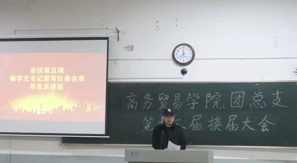 大会上,第十二届团总支副书记苏佳妮做工作汇报,她对一年来的工作进行反思总结,向一直以来辛勤指导的老师和努力工作的团总支干事们表达了感谢。各部门干事依次上台竞选发言,向大家展现自己的工作态度和部门规划。商务贸易学院党总支书记杨学文宣布了本届团总支学生会学生干部成员名单,并为他们颁发聘书。