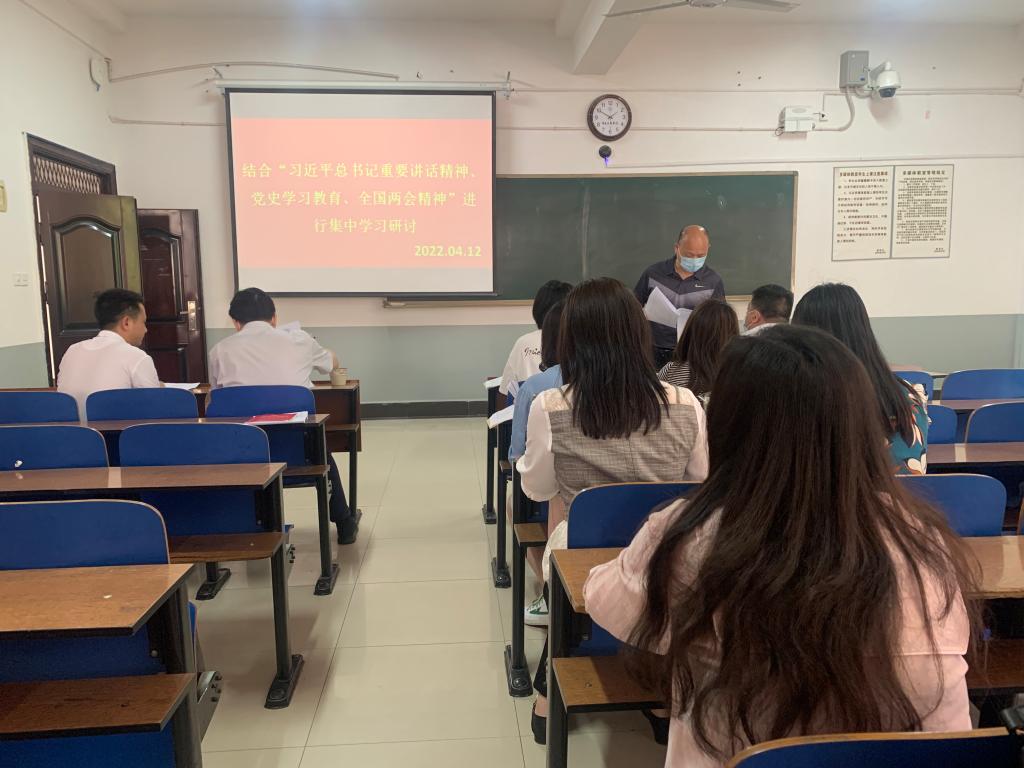 结合习近平总书记重要讲话精神、党史学习教育、全国两会精神,4月12日下午,商务贸易学院党总支在2213教室开展主题教育二级中心组集中学习研讨。学院领导、党支部书记、办公室主任、教研室主任等相关科级干部参加了会议。会议由党总支书记杨学文主讲。