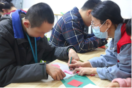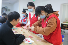 活动分为四个环节:领略壮族风情、案例情景演绎、课后游戏及手工制作。志愿者首先为残障学员详细介绍了广西壮族自治区的气候、饮食、服饰等特色。共同欣赏壮族青年的山歌对唱,学习了壮族民歌,志愿者们声情并茂地演绎了壮族歌仙传说,获得大家的一致好评,也将活动气氛推向了高潮。通过多样的形式,让怡智家园的残障学员身临其境感受不一样的民俗文化。课后,志愿者和残障学员进行了游戏与手工制作,拉近了彼此的距离,锻炼了大家的动手能力。残障学员们通过制作爱心贺卡送给志愿者与机构社工,对他们的付出表示感激。开福区怡智家园托养中心专职社工高甜对我院春雨志愿服务队长期以来给予中心学员的关爱与帮扶表示感谢。