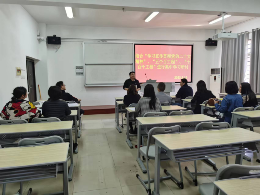 李清文最后作总结发言。他指出,我们要贯彻落实《湖南省高等学校学习贯彻落实党的二十大精神系列活动方案》,围绕学校党委学习宣传贯彻党的二十大精神“五个百”工程、“十百千”工程和系列比赛活动相关工作要求,扎实做好近期工作。