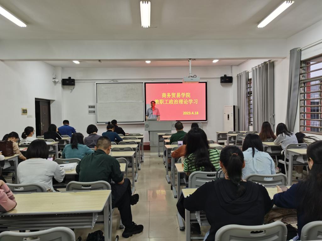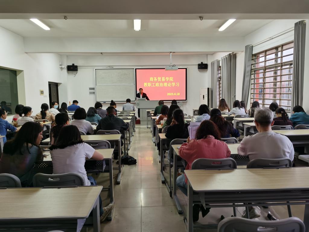 4月18日下午,商务贸易学院在博文楼5602教室开展了2023年4月教职工政治理论集中学习,全体教职员工参加学习。会议由学院党总支书记李清文主持。