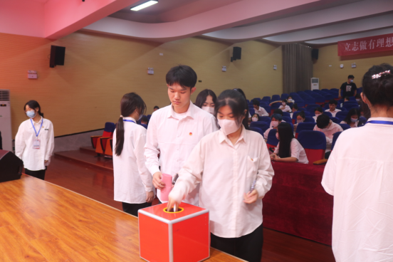 商务贸易学院第九次团员代表暨第十次学生代表大会正式会议第二次会议于当晚19:30召开,大会审议并通过了学院第八届团总支委员会工作报告,委员选举办法以及选举监票人、计票人名单。接下来,各团委委员、学生会委员候选人进行自我情况介绍。在听取了各位候选人精彩的竞职演讲后,与会代表对各位候选人以无记名投票的方式进行了民主选举。