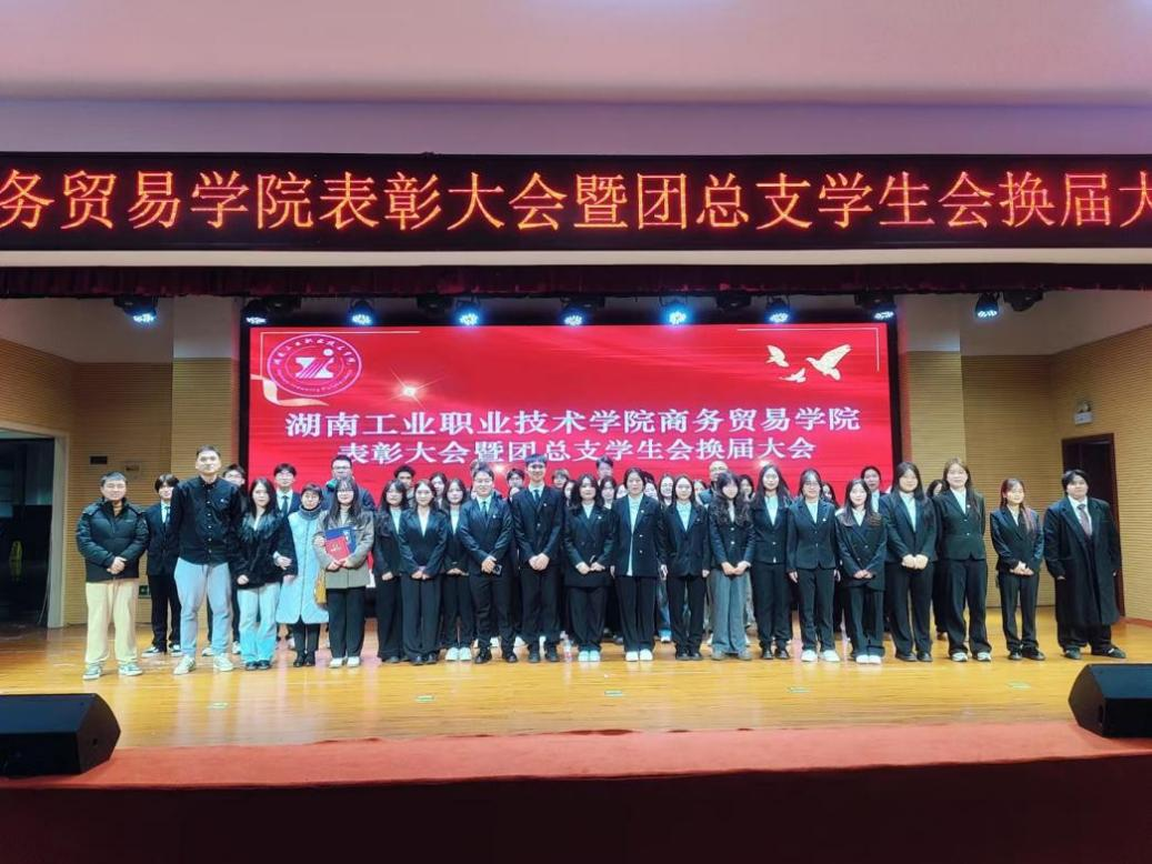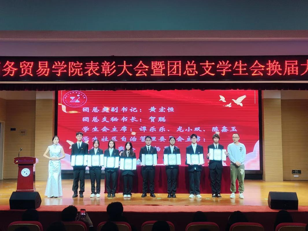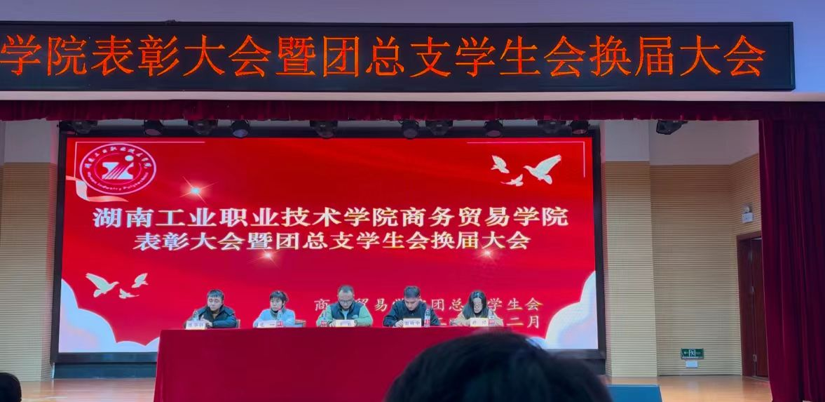 2024年12月12日晚,商务贸易学院在大学生活动中心1102 举行“商务贸易学院表彰大会暨团总支学生会换届大会”。学院党总支副书记郑琪、团总支书记谢昕中、辅导员毛一、孙颖、陈宇轩及全体团学干部、学生代表出席了本次大会。