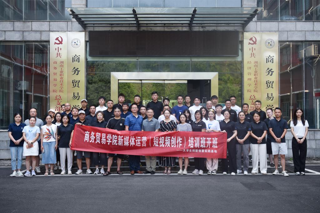 近日,商务贸易学院承办的“新媒体运营(短视频创作)”社会学员技能培训班在学校博文楼101室大学生创新创意基地顺利开班。此次培训班共吸引了湖南顺时针健康管理有限公司、长沙宝悦汽车服务有限公司、湖南省联创低碳经济发展中心、新田职业中专学校、斐石科技等多家企业参与。学院副院长何倩、副院长吴代文、实训中心主任姚益军和相关老师参加了此次开班仪式。湖南青年摄影家协会、湖南vivo为本次培训提供了相关技术支持。