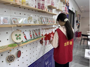本次活动为“手心”文创辅助性就业项目活动,志愿者们主要与同学们进行手工艺品的制作。志愿者们首先参观同学们制作的手工艺制品的展示区。