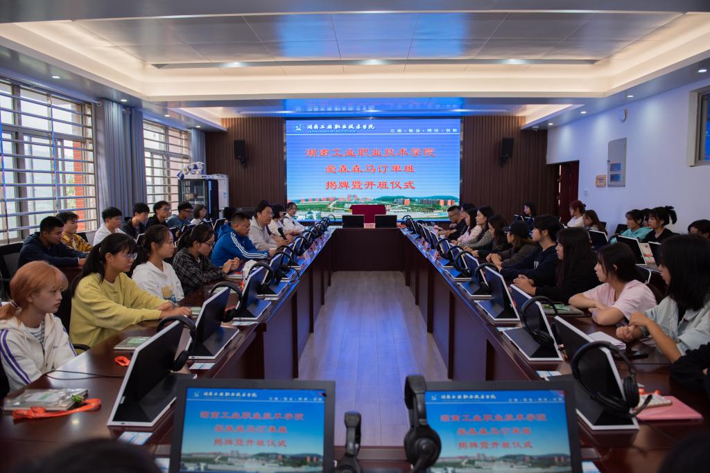 长沙爱巴森网络科技有限公司饶小华总经理提出,订单班是高职院校有效的人才培养模式,也是企业有效的人才招揽模式,订单班的同学们都是优秀的也是幸运的。“爱森森马订单班”的优势在于为就业谱写基础,同学们通过订单培养可以前置工作内容,提早体验实习过程,参加试岗顶岗培训等;还可以通过管培生考核,毕业后有机会成为公司重点培养的人才。为了做好订单班的人才培养工作,公司将投入近40万元与学院共建电子商务实习实训基地,并提供真实训练项目供学生实训练习。随后,“爱森森马订单班”负责人宋泽玉老师对订单班的整体节奏、课程安排和激励机制等进行了详细的解读,并向学员们介绍了爱森电商的企业使命和愿景。