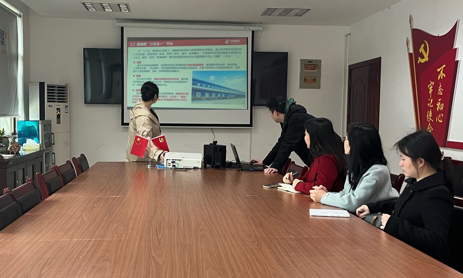 3月30日,我院商务英语教研室主任张艺凡带队,商英教研室专任教师一行赴湖南邮政国际分公司调研。公司e邮宝项目部经理陈佩与市场部相关工作人员开展座谈并陪同参观。