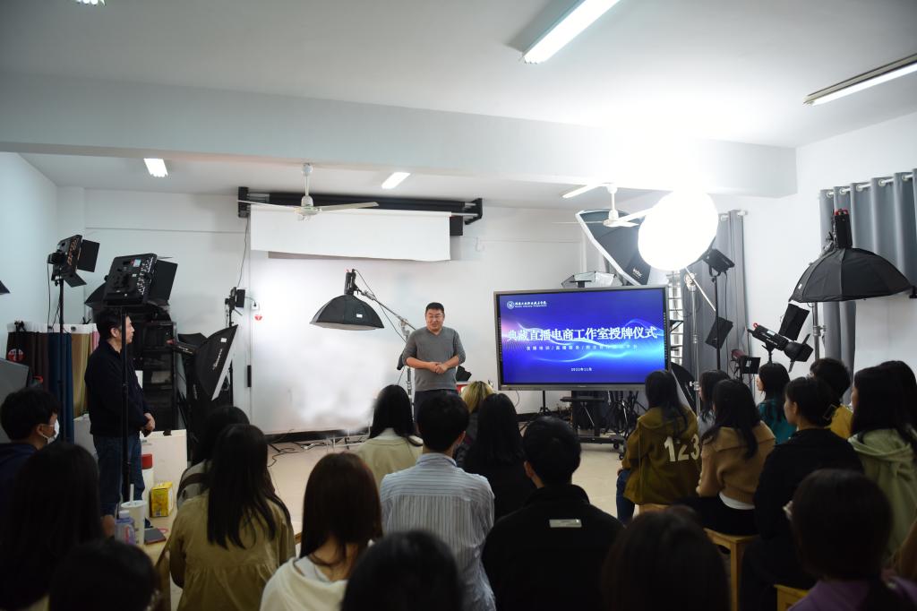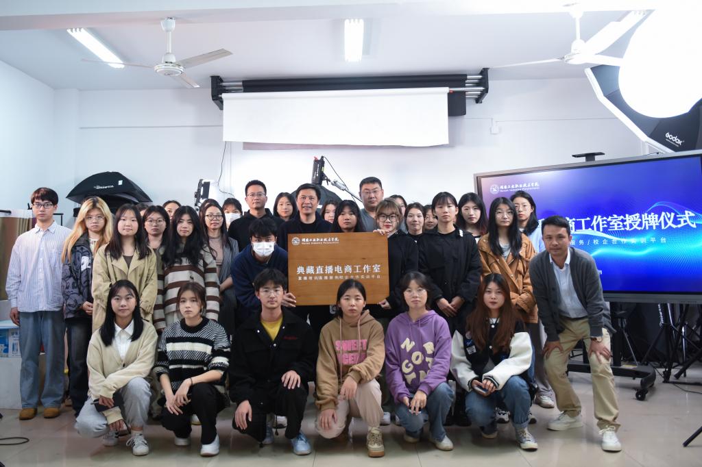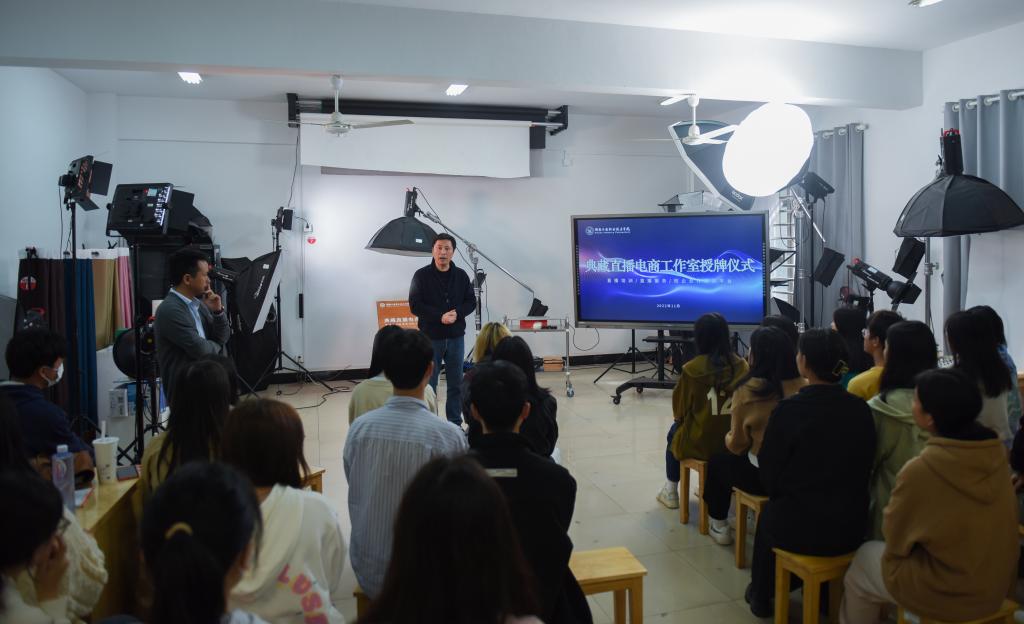 11月21日,由电子pg游戏平台下载商务贸易学院与湖南典藏映像文化传播有限公司合作成立的“典藏直播电商工作室”授牌仪式在博文楼5204教室隆重举行。出席本次开班仪式的嘉宾和领导有湖南典藏映像文化传播有限公司总经理唐柏清、行政负责人龙玉妮、电子pg游戏平台下载商务贸易学院院长申奇志、副院长吴代文、副院长何倩、部分参与项目的老师,以及面向我院相关专业招募的工作室学员。