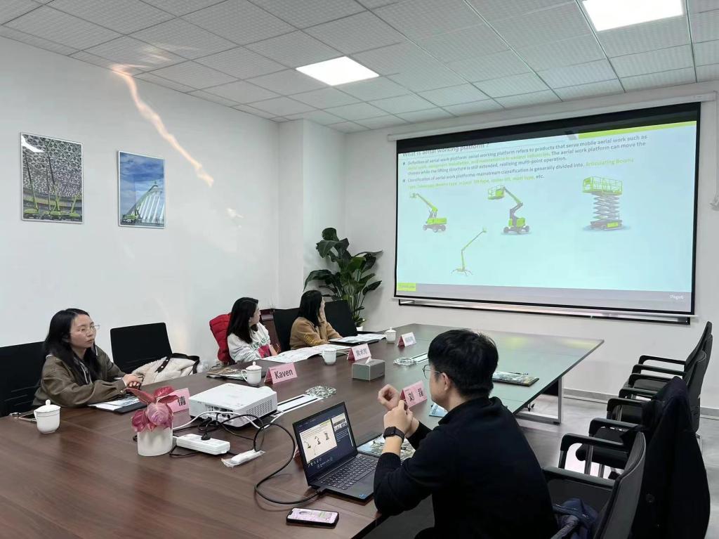 调研组与中联产品部经理焦增荣、海外销售部刘磊等开展座谈深入交流。座谈会上,焦增荣介绍了中联重科高空作业机械智能制造园区的国际国内市场及全线产品。双方就数字化时代海外业务模式变革对市场营销、跨境电商、商务英语等专业建设、课程建设、人才培养、师资共建等方面进行深入交流研讨,进一步明确了深化合作的方向。