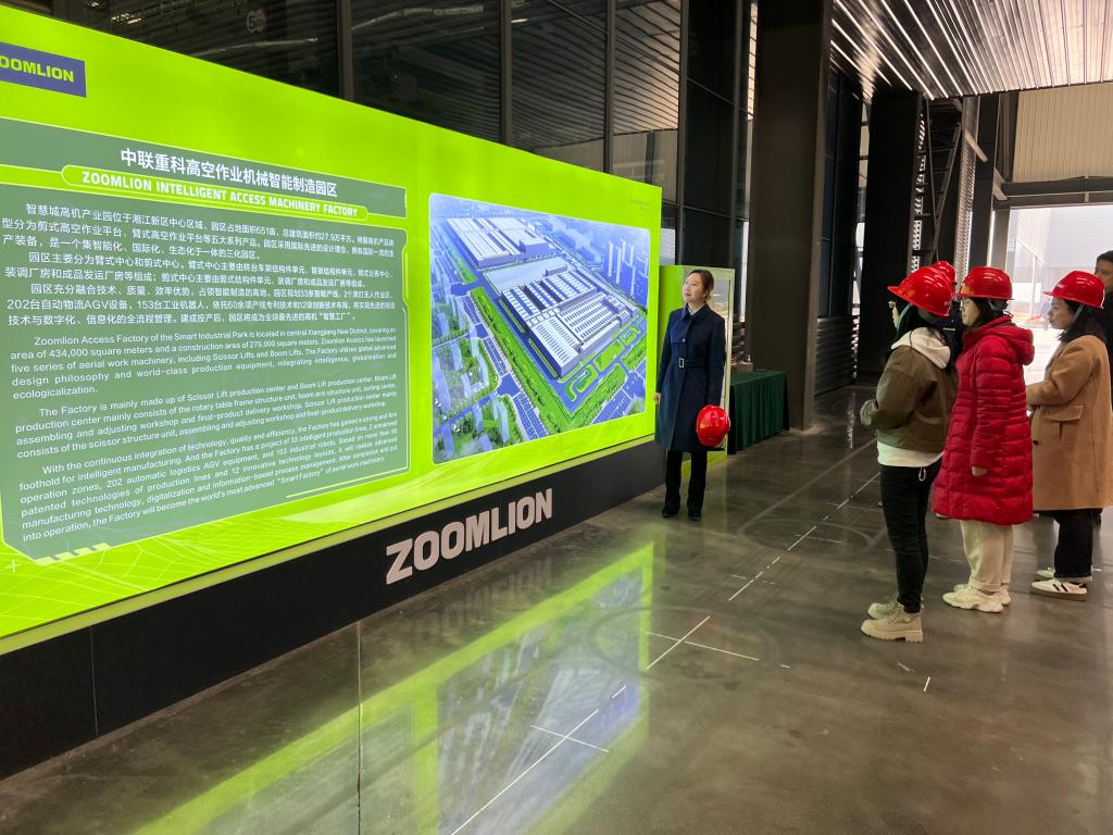 为深化产教融合,推学院专业更好的服务装备制造业,凸显“工”字号特色,近日,商务贸易学院副院长何倩带领市场营销、商务英语教研室专业教师一行5人赴中联重科高空作业机械智能制造园区开展实地调研。