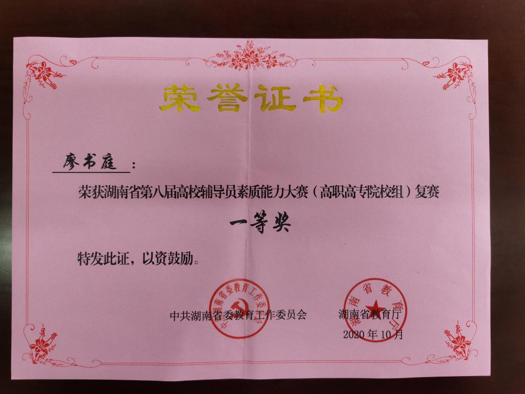 湖南省第八届高校辅导员素质能力大赛(高出高专院校组)复赛一等奖