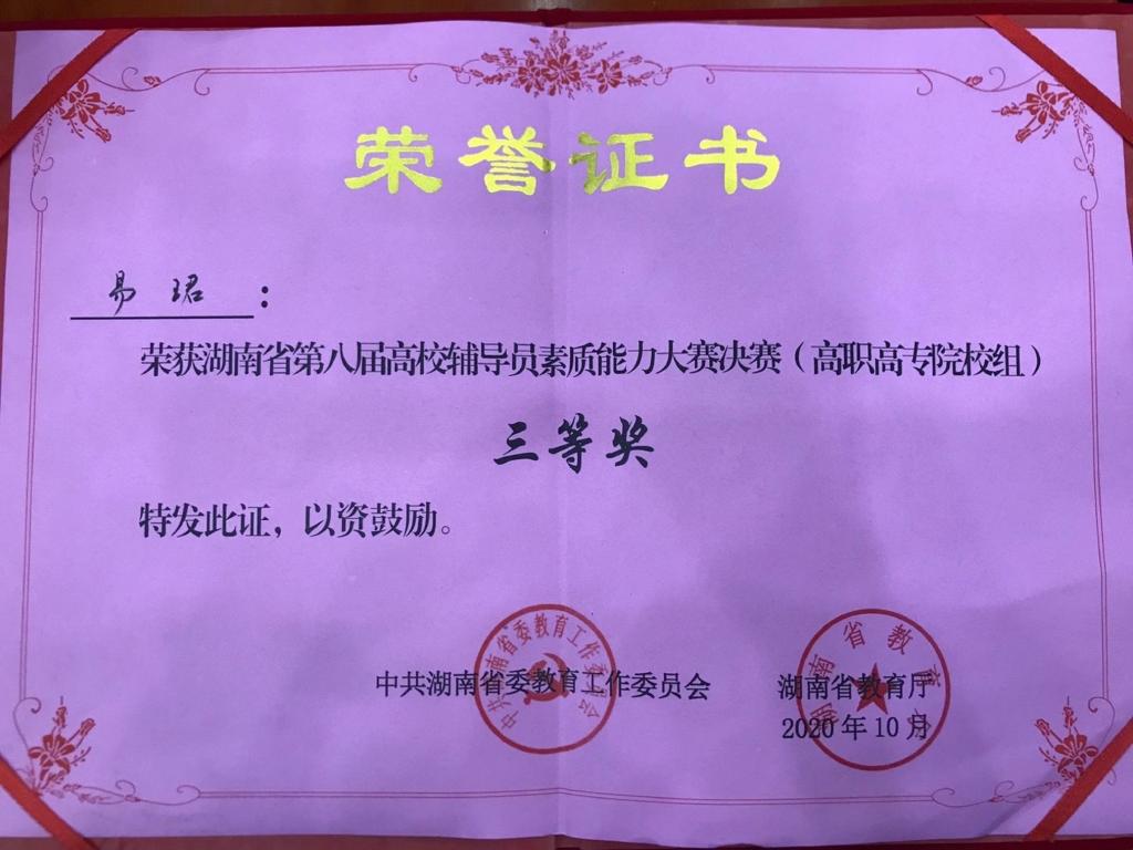 湖南省第八届高校辅导员素质能力大赛(高出高专院校组)决赛三等奖