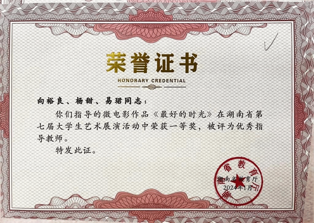 湖南省第七届大学生艺术展演活动 一等奖