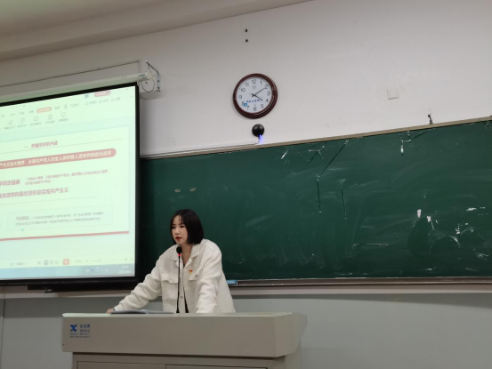 杨甜老师从“把握信仰的内涵”、“品味信仰的味道”、“找准信仰的差距”、“践行信仰的要求”四个层面出发,通过大量的史实做了生动详细的讲解。她号召全体学员要坚定树立马克思主义理论信仰,补足精神之钙,把稳思想之舵。通过品味信仰的“味道”,全体成员对党的历史、共产主义信仰的伟大力量有了更为深刻的理解。