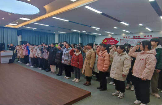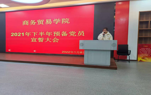 1月8日下午,商务贸易学院学生党支部在1101教室召开了2021年下半年预备党员宣誓大会,大会由学生党支部书记刘超老师主持,商务贸易学院学生党支部全体党员及77名预备党员参加了本次会议。