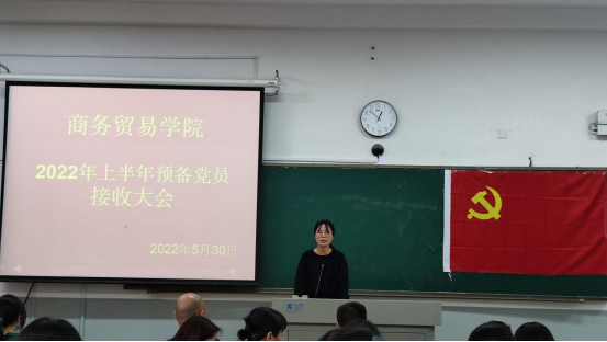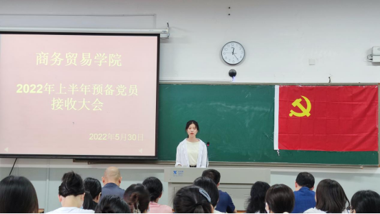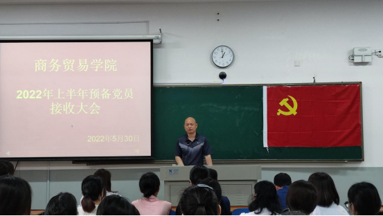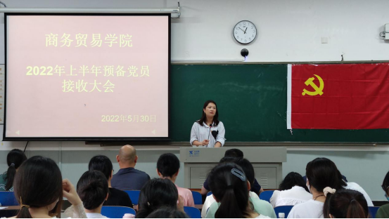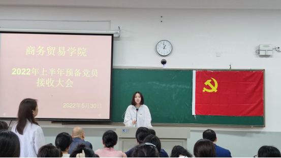 2022年5月30日下午,商务贸易学院学生党支部在2112教室召开了2022年上半年预备党员接收大会。学院所有学生党员及本次拟发展的发展对象参加本次大会。会议由商务贸易学院学生党支部书记刘超老师主持。