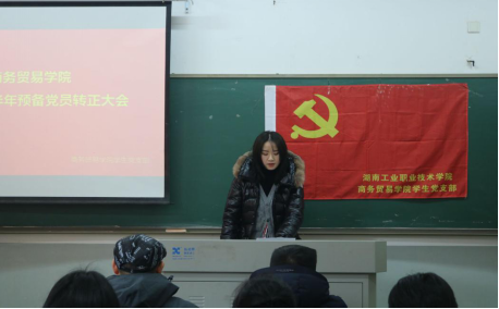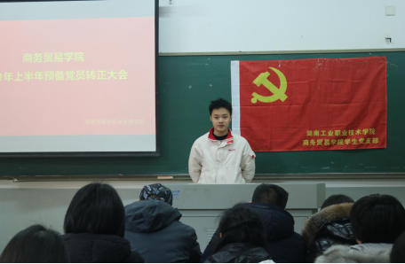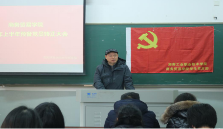 2021年1月11日上午,商务贸易学院学生党支部在2105教室召开了2021年上半年预备党员转正大会。商务贸易学院党总支书记杨学文、党总支副书记李清文院长及全体党员参加此次大会,大会由刘超老师主持。