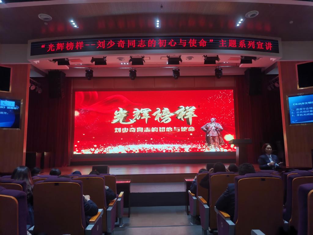 陈列馆参观结束后,老师们来到纪念馆报告厅聆听了《光辉榜样——刘少奇同志的初心与使命》主题系列宣讲。宣讲共分为《工运领袖虎山行》《共和国主席长子刘允斌的家国情怀》《一辆连接民心的吉普车》《人民的勤务员》四个部分。马院教师张玲娣表示:“这场宣讲让人非常感动,有一种身临其境的感觉,感受到共产党人的革命精神要代代相传。”