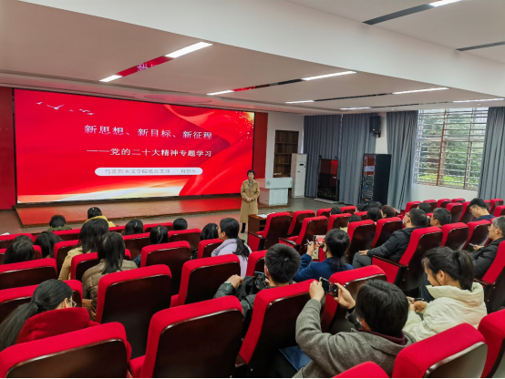 党总支部书记以《新思想、新目标、新征程——党的二十大精神专题学习》为题,为全体党员教师讲授专题党课。其他五个支部书记分别以《笃行不怠的战略定力——学习宣贯党的二十大精神》《引领复兴的宏伟蓝图》《在法治轨道上全面建设社会主义现代化国家》《学思践悟二十大 砥砺奋进新征程》《聚天下英才 筑强国之基》为主题,在各党支部讲授党课。